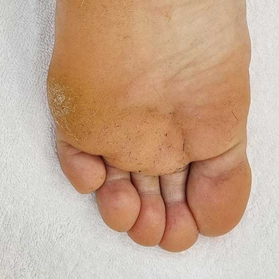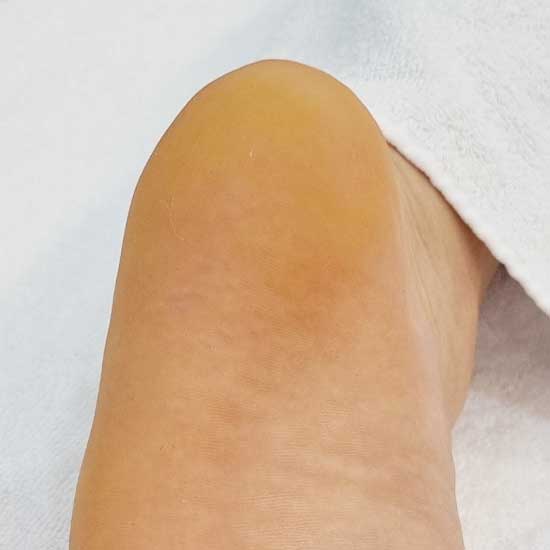 고객님은 군 복무 당시 오랜 시간 단단한 군화를 착용하면서 뒤꿈치에 굳은살이 처음 생기기 시작했습니다. 초기에는 넓게 퍼진 형태였고 불편함도 거의 없어 크게 신경 쓰지 않고 지내셨습니다. 하지만 시간이 지나면서 뒤꿈치의 특정 부위가 점점 두꺼워졌고, 결국 걸을 때 불편함을 느끼게 되었습니다.